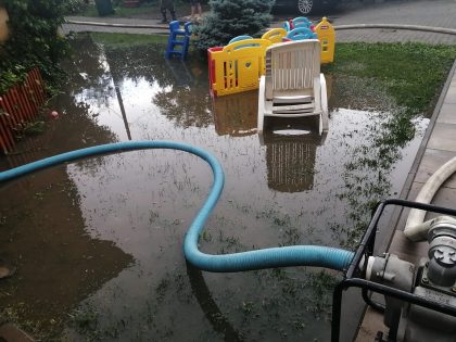 3 intervenții ale pompierilor în Mediaș în urma ploii torențiale de sâmbătă după-amiază.