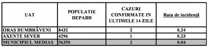 Localitățile din zona Mediaș care nu mai apar în tabel au incidența zero.