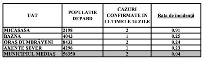 Localitățile din zona Mediaș care nu mai apar în tabel au incidența zero.