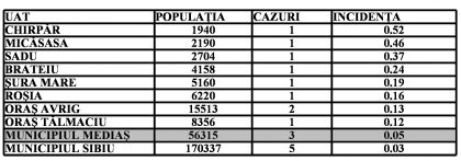 Conform Prefecturii Sibiu, în municipiul Mediaș rata incidenței cazurilor de COVID-19 era MIERCURI de 0,05 la fel ca și în ziua precedentă. În ceea ce privește județul Sibiu, rata de incidență cumulată este de 0,04/1000 de locuitori în ultimele 14 zile, față de 0,03 pe 29 iunie 2021.
