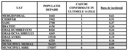 Localitățile care nu mai apar în tabel au incidența zero.