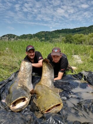 Somni uriași prinși de Delphin Team Mediaș pe râul Olt, în zona Sibiu.