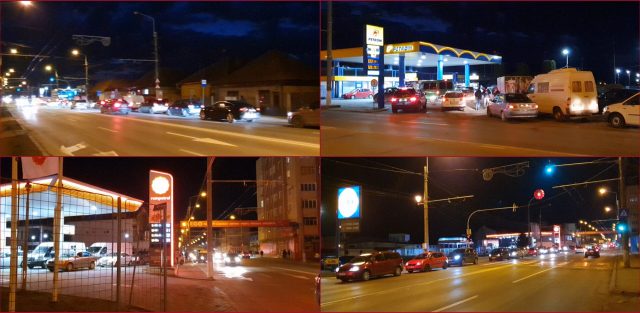 Pe Șoseaua Sibiului, banda 1 de circulație este blocată în totalitate între benzinăriile Rompetrol și Petrom. Practic, coada de la Petrom se întinde pe câteva sute de metri până după magazinul Lidl. La Copșa Mică, situația este identică. Și acolo coada se întinde pe sute de metri.