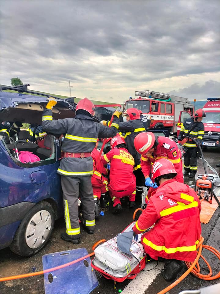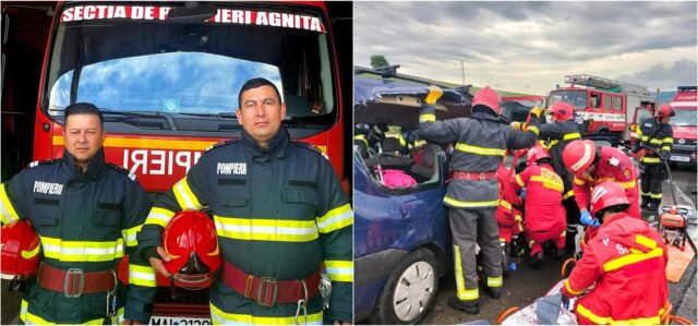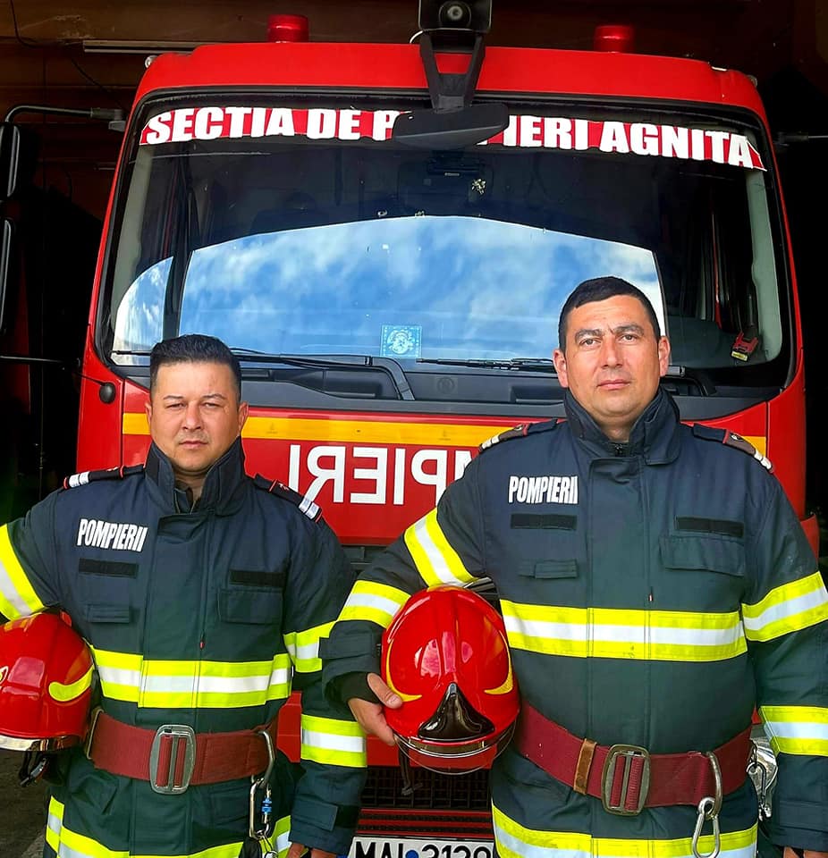 Doar o privire au schimbat cei doi salvatori, iar în câteva secunde unul a întrerupt alimentarea electrică a autoturismului, iar celalalt a deschis extinctorul și a stins flacăra ce amenința viața persoanelor încarcerate. Sirenele se apropiau, iar colegii pompieri ai ISU Mureș, au intervenit cu promptitudine și eficiență. Plutonierul Șerban Alexandru și Sergentul major Chirilă Răzvan sunt angajați în cadrul ISU Sibiu, din anul 2020, ambii fiind conducători de autospeciale la Stația Agnita. Vă mulțumim pentru exemplul pe care ni l-ați oferit! Suntem mândri că sunteți colegii noștri! Purtați în continuare, cu demnitate haina acestei nobile meserii!” este mesajul postat pe pagina de Facebook a ISU Sibiu.