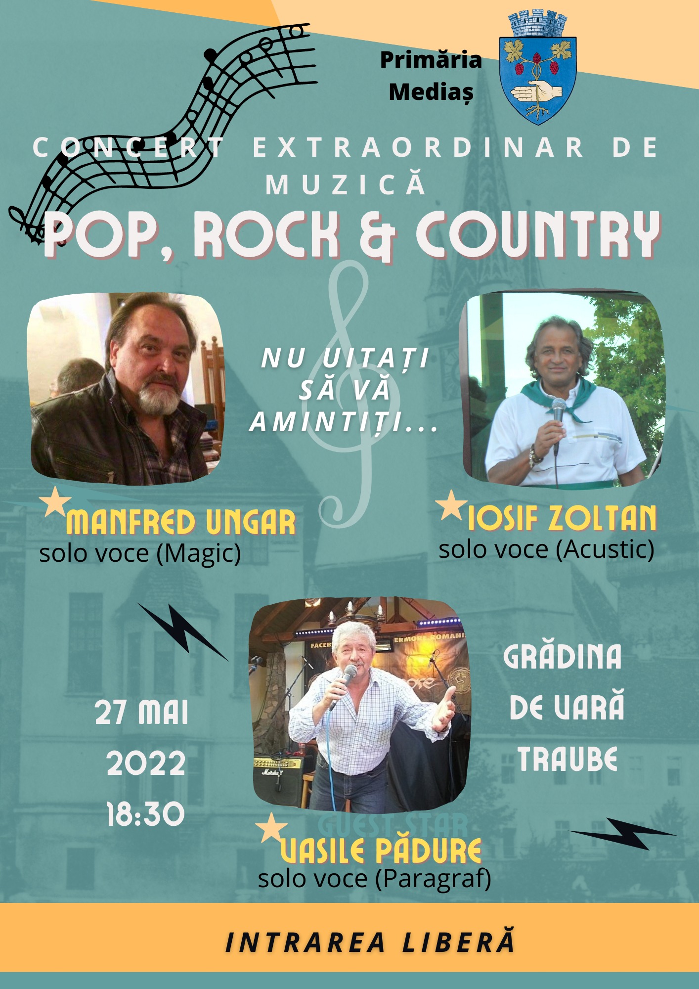 Vineri după-amiază de la ora 18:30 va avea loc la Grădina de Vară Traube, un concert extraordinar de muzică pop, rock şi country. Participanții vor avea ocazia să îi asculte pe trei dintre veteranii muzicii medieșene.