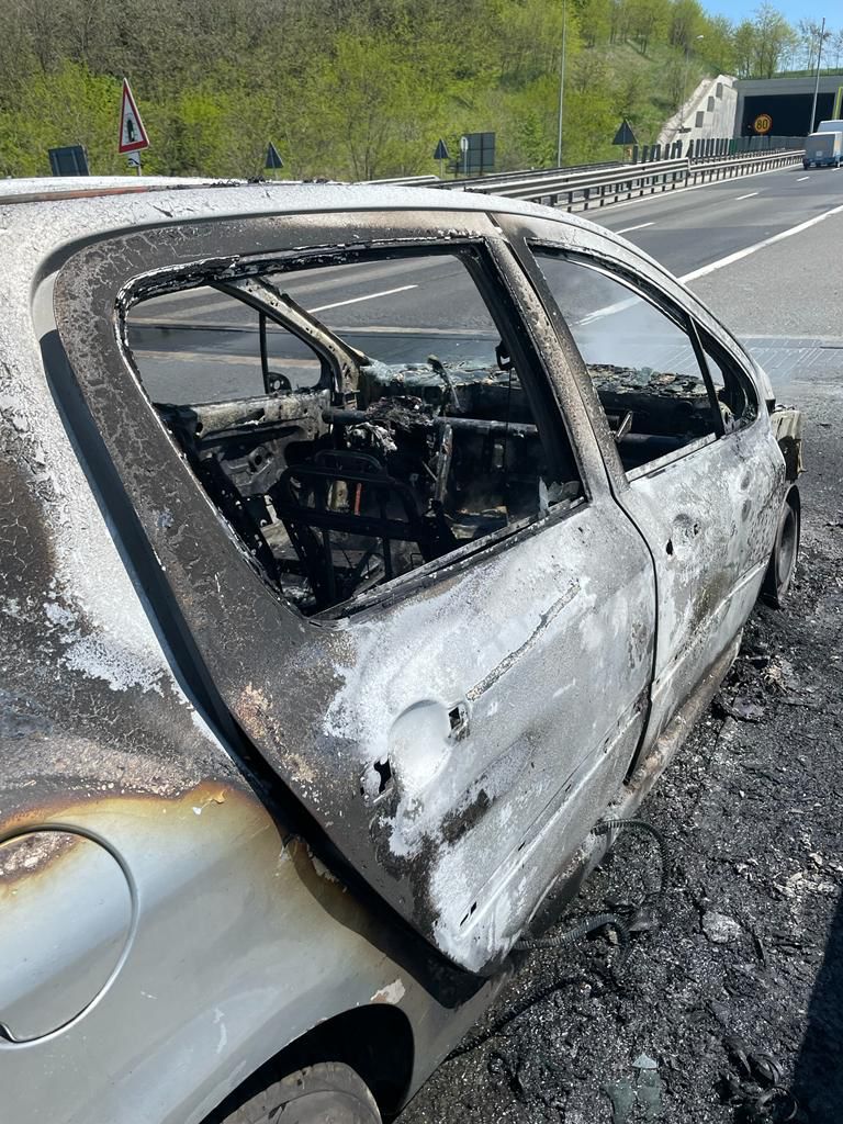 Mașină distrusă aproape în totalitate în urma unui incendiu pe A1.