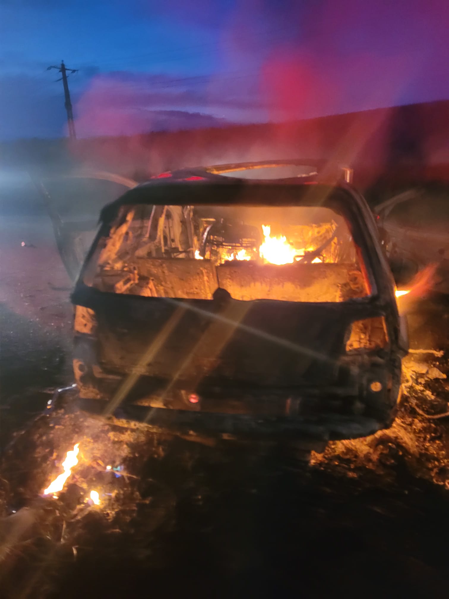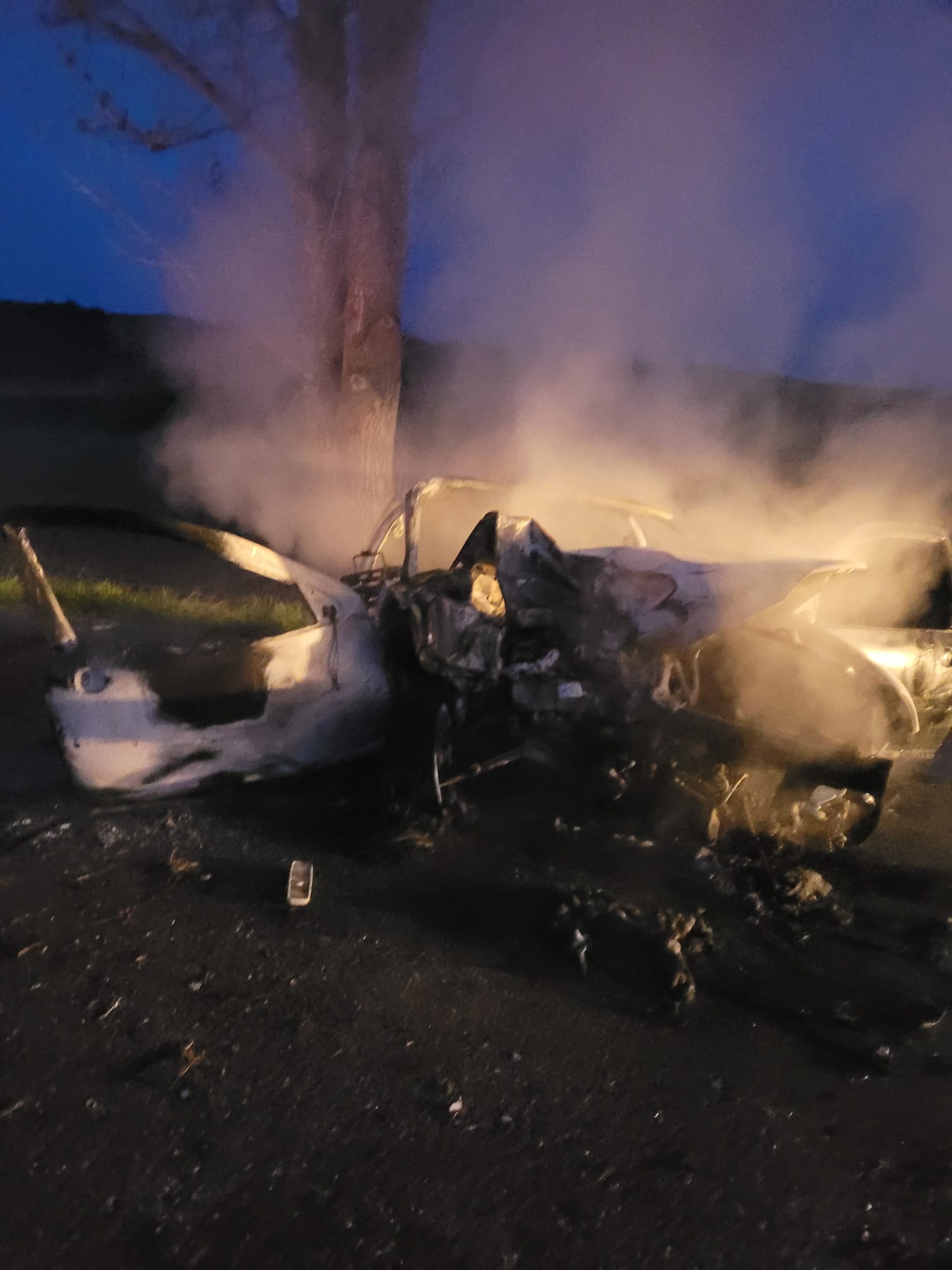 Un autoturism a intrat într-un copac între Bazna și Blăjel iar apoi a luat foc.