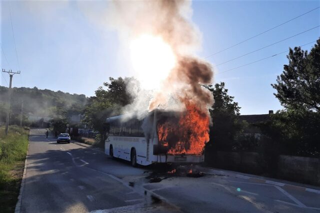 Incendiul s-a produs miercuri dimineață pe strada Viile Sibiului din municipiul Sibiu. Autobuzul staționa în momentul în care a luat foc. Nicio persoană nu se afla în interior.