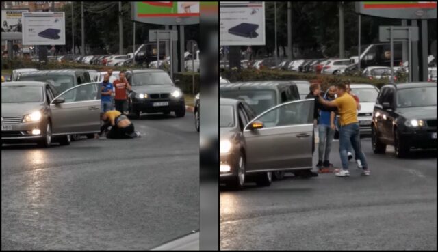 Incidentul s-a petrecut miercuri după-amiază în municipiul Sibiu, în sensul giratoriu de la intersecția Bulevardului Mihai Viteazu cu strada Rahovei. Din imaginile surprinse de un participant la trafic și postate pe grupul din rețeaua de socializare Facebook, INFO TRAFIC jud. SIBIU, se poate observa cum între doi bărbați are loc o luptă corp la corp, iar apoi unul dintre ei se îndreaptă spre mașină, cu intenția de a pleca.