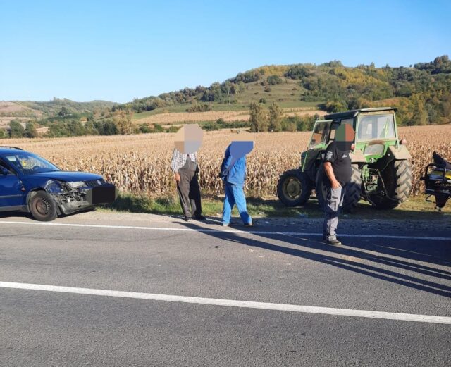Sâmbătă după-amiază, polițiștii rutieri au intervenit la un accident de circulație produs pe DN 14, la ieșirea din localitatea Agârbiciu spre Sibiu. Au fost implicate un autoturism și un tractor.