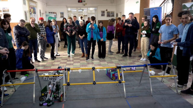 În vizita care a avut loc la Colegiul Școala Națională de Gaz, oaspeții olandezi au avut ocazia să asiste și la meciuri demonstrative între roboții construiți de liceenii medieșeni.