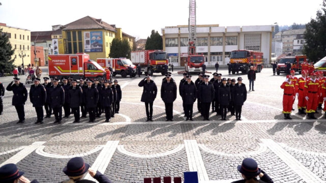 Tot astăzi au fost avansați 5 angajați ai ISU Sibiu, a fost desemnat salvatorul anului, iar alți 8 au fost recompensați pentru modul exemplar în care își îndeplinesc atribuțiile.