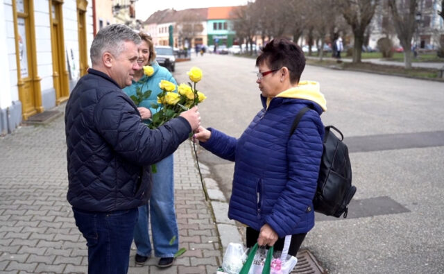 Vineri după-amiază, alături de mai mulți consilieri locali și colegi din cadrul Partidului Național Liberal, edilul a oferit flori doamnelor și domnișoarelor întâlnite în zona centrală a municipiului Mediaş.