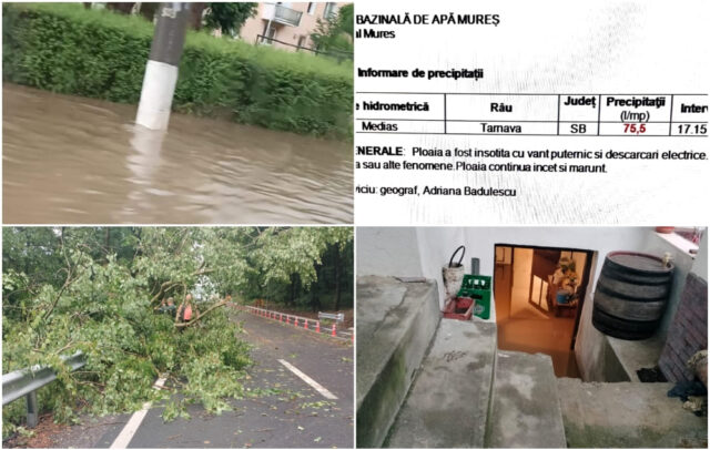 Conform ISU Sibiu, pompierii au intervenit în urma celor 46 de apeluri primite pe numărul unic pentru apeluri de urgență 112, pentru evacuarea apei din 2 locuințe, 14 subsoluri (pivnițe), 4 gospodării (curți) și 2 depozite, dar și pentru degajarea a trei copaci căzuți pe carosabil.
