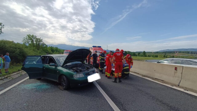 ISU Sibiu a intervenit două echipaje SMURD dintre care unul cu medic, o autospecială de descarcerare și una de stingere.
