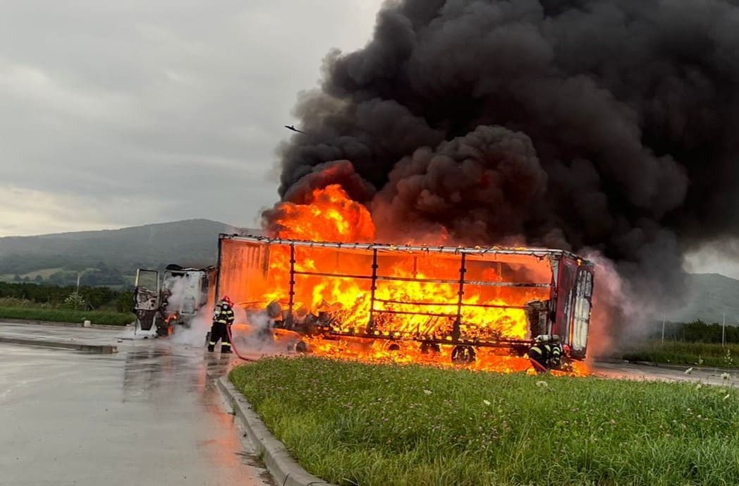 Pompierii sibieni au intervenit de urgență pe A1, la ieșirea spre localitatea Boița, într-o parcare pentru stingerea un incendiu izbucnit la un ansamblu TIR care staționa. La fața locului pompierii au intervenit cu două autospeciale de stingere, o autocisternă și un echipaj SMURD.
