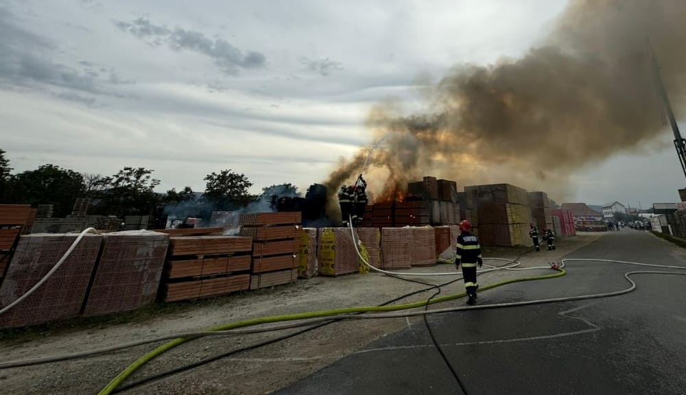 Pompierii au localizat incendiul, se lucrează pentru stingere și îndepărtarea efectelor negative. Au ars aproximativ 3000 de paleți și au fost afectați de flăcări mai mulți paleți cu cărămizi.