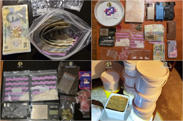 Ieri, 13 noiembrie, au fost efectuate 10 percheziții domiciliare, în județele Sibiu și Alba, fiind descoperite și ridicate aproximativ 150 de grame de droguri de mare risc și substanță psihoactivă (4MMC, 3 CMC și 2 MMC), obiecte purtând urme de substanță, precum și alte mijloace de probă.