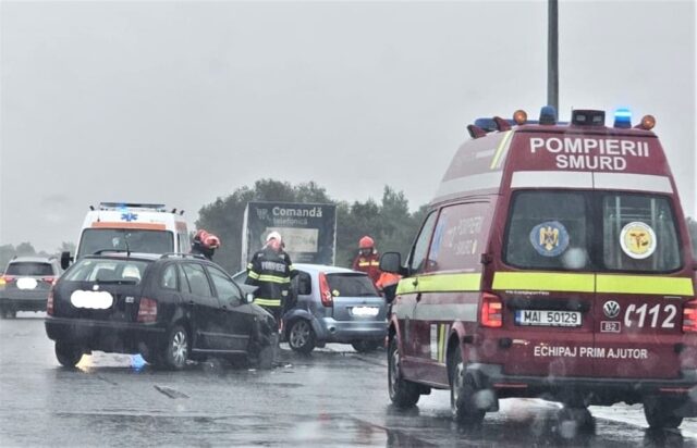 SAJ Sibiu a trimis de urgență un echipaj de tip B în apropiere de localitatea Veștem, la un accident rutier produs între două autoturisme și o autoutilitară.