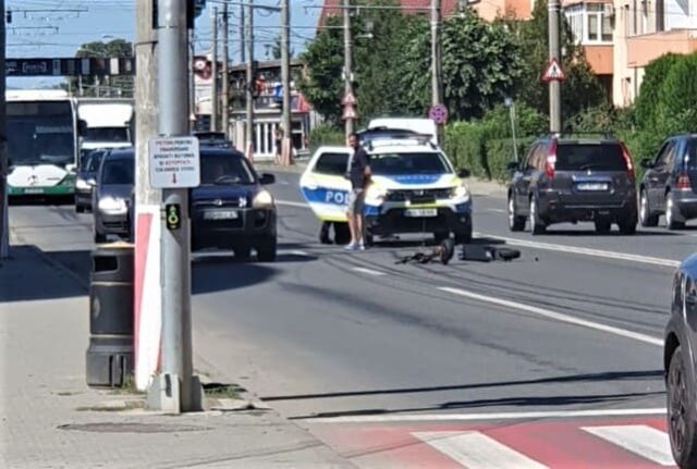 Autoaccident pe Șoseaua Sibiului | Un tânăr a căzut cu trotineta electrică