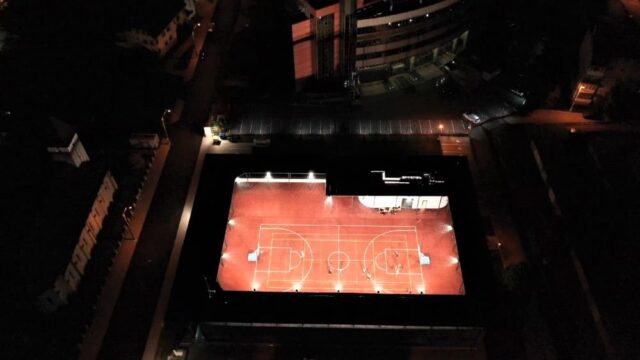 Baschet la înălțime pe un teren cu nocturnă | Invitație la mișcare pentru medieșeni
