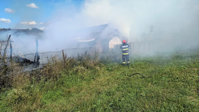 Incendiu la un grajd cauzat de jocul copiilor cu focul | Foto