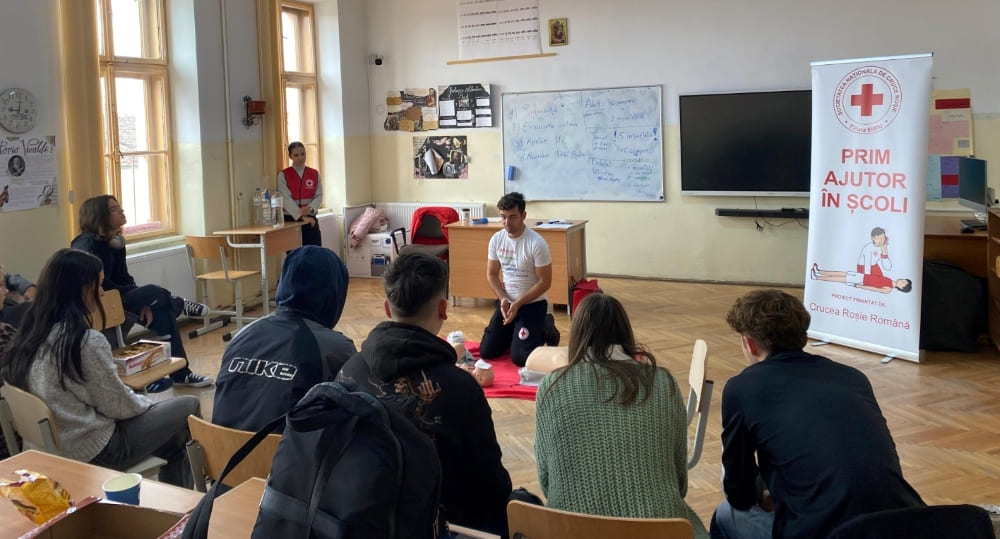 Cursurile, singurele din România certificate la nivel internațional, sunt susținute de instructori Crucea Roșie Filiala Sibiu în școlile și liceele din județul Sibiu.