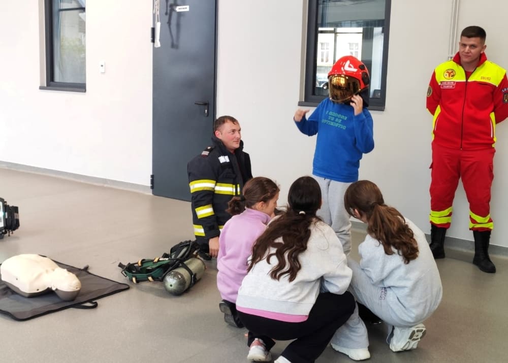 Elevilor le-au fost prezentate câteva noțiuni esențiale de acordare a primului ajutor, precum evaluarea stării victimei, apelarea corectă la 112 , manevrele de resuscitare și modalități de intervenție în situații de sufocare. În plus, copiii au văzut care este componența echipamentului pompierilor și rolul fiecărui element.