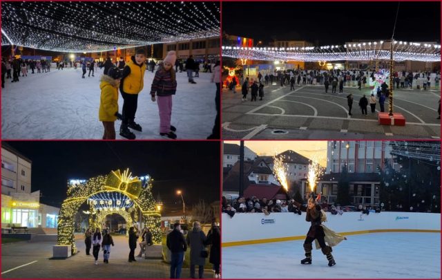 Sezonul sărbătorilor de iarnă, deschis oficial la Mediaș | Spectacol pe patinoar | VIDEO