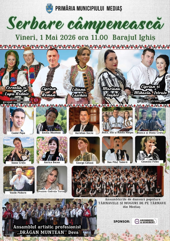 Serbarea câmpenească din data de 1 mai va fi organizată de Primăria municipiului de pe Târnava Mare cu sprijinul Asociației Mediaș 750 de Ani.