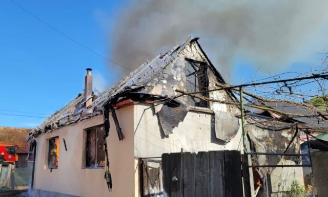 O casă a ars complet la Moșna în urma unui scurtcircuit la o lampă de iluminat defectă | Foto