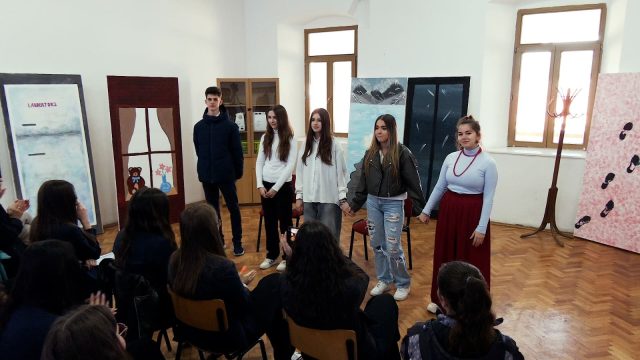 Marți dimineața, elevii care fac parte din trupa de teatru au prezentat în premieră piesa „Plec.”, o poveste puternică despre asumarea unei teme sensibile, aceea a abandonului școlar.