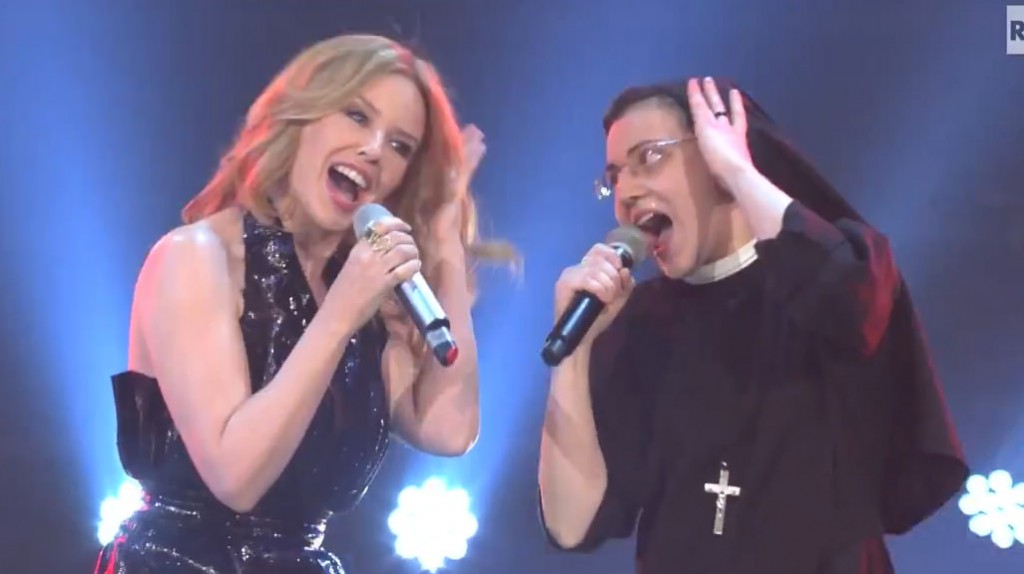Sora Cristina Scuccia, una dintre concurentele emisiunii „Vocea Italiei”, a susţinut un duet excepţional alături de Kylie Minogue, cântând melodia „Can't get you out...